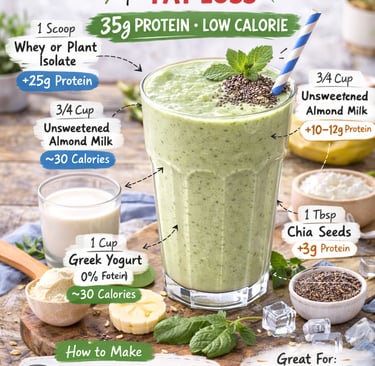 This smoothie delivers ~35 grams of protein while keeping calories controlled.